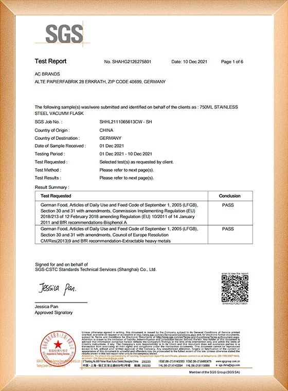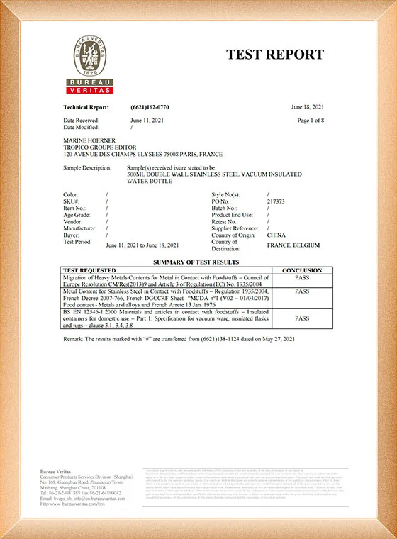 Kami memiliki tim penelitian dan pengembangan independen, dengan cangkir termos baja tahan karat independen yang dipatenkan. Pabrik telah lulus inspeksi dan sertifikasi BSCI.