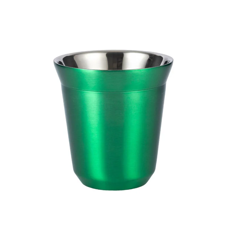 Desain dinding ganda juga mencegah terbentuknya kondensasi pada lapisan luar, menjaga tangan Anda aman dari luka bakar dan permukaan Anda bebas dari kelembapan. Salah satu fitur paling mencolok dari Double wall Espresso Cup adalah desainnya yang ramping dan modern.